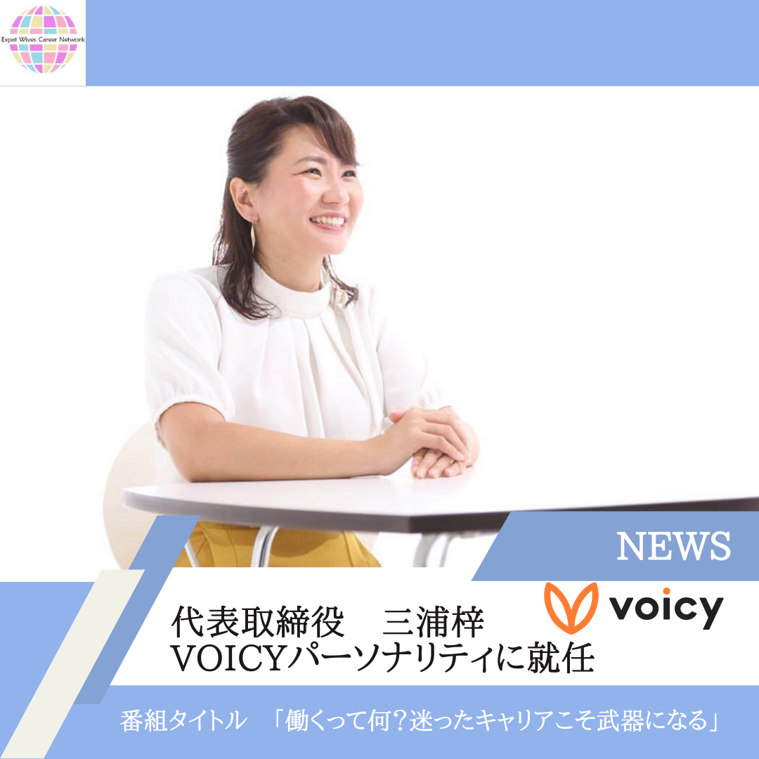 この度、株式会社駐妻キャリアnetの代表取締役である三浦梓が、音声配信プラットフォーム「Voicy」の番組パーソナリティに選出され、番組「働くって、何?迷ったキャリアこそ武器になる」の配信を開始いたしましたことをお知らせいたします。